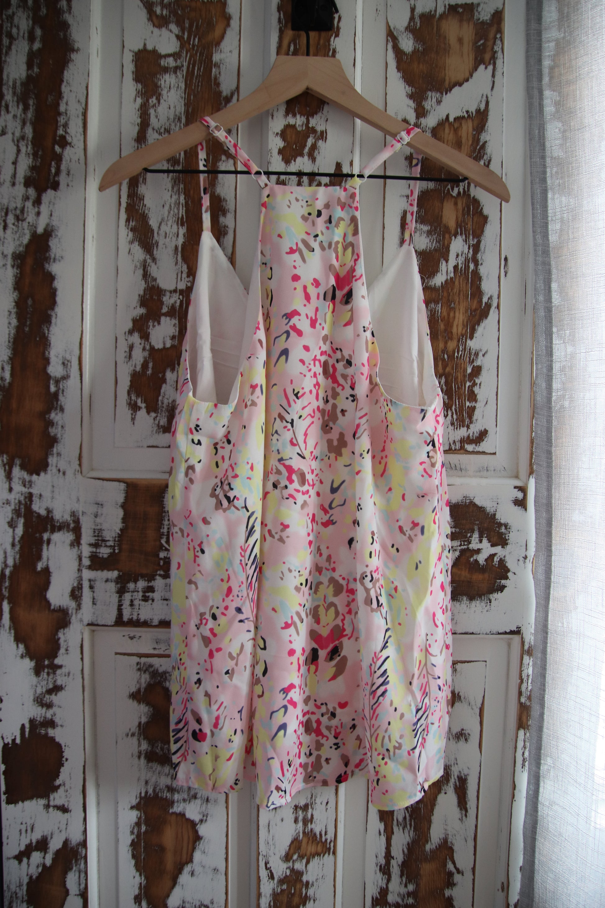 Expertly crafted for both style and comfort, this floral print racer back tank features a flowy silhouette that drapes elegantly over the body. The whimsical floral pattern adds a touch of feminine charm while the racer back design provides enhanced mobility. Perfect for layering or wearing alone during warmer months. Pair with jeans or shorts for a casual look or dress up with some khakis or a skirt.