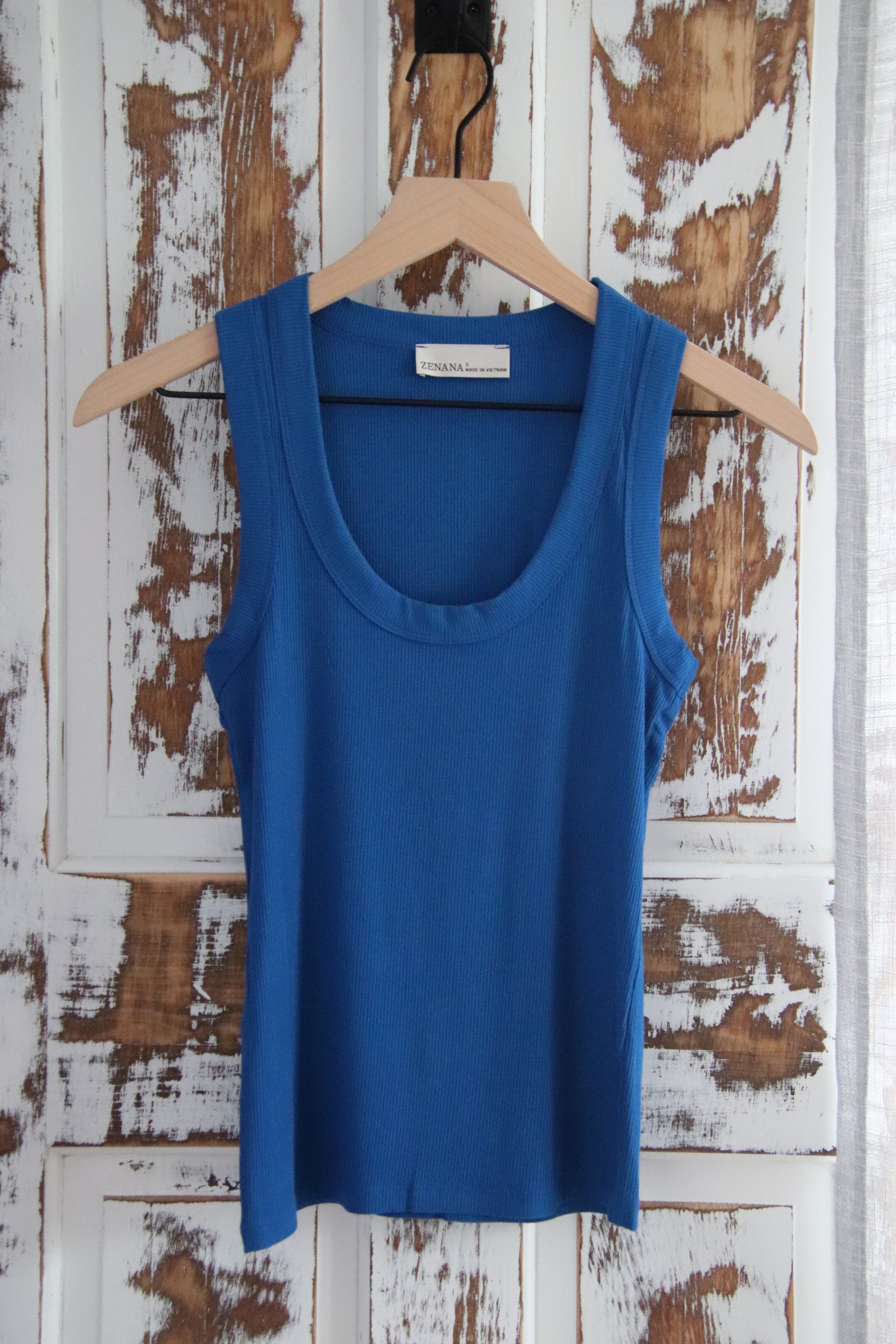 This ribbed scoop neck tank top offers a sleek, form-fitting silhouette that enhances layering or stands out on its own. Crafted with a textured ribbed fabric, it provides subtle stretch and breathability for all-day comfort. The scoop neckline adds a flattering touch, making it a versatile essential for both casual and polished looks.