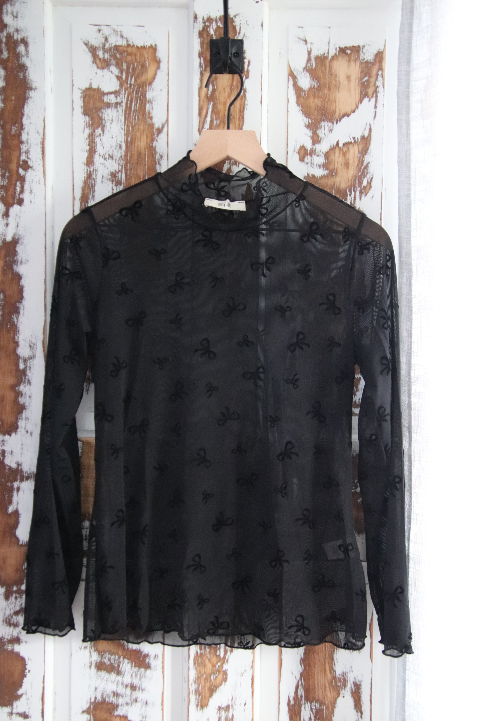 The Ribbon Mesh Top features a mock neck and long sleeves crafted from a lightweight, stretchy mesh fabric that ensures a comfortable, form-fitting silhouette. Delicate ribbon details add a refined touch, making this piece ideal for layering or wearing on its own for a sophisticated yet modern look. Its breathable design balances style and function, perfect for those seeking elevated everyday wear.